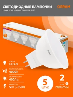 Лампа GU5.3 5Вт LED Value MR16 400лм 4000К светодиодная 5 шт