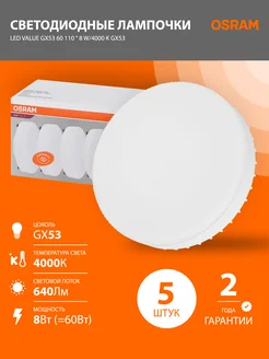 Лампа светодиодная GX53 LED Value 640лм 8Вт 4000К 5 шт