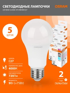 Лампочка светодиодная E27 LED BASE A75 9W 720лм 4000К 5 шт