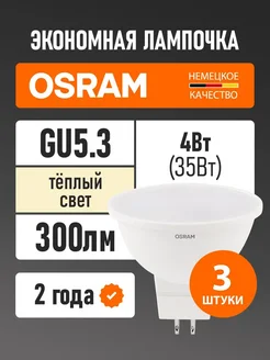 Лампа светодиодная GU5.3 LED Star MR16 300лм 4Вт 3000К 3 шт