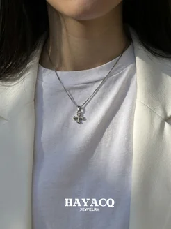 Женский серебристый браслет-кольцо HayacQ с крестом