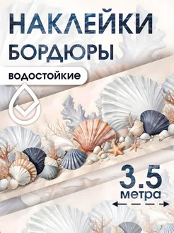 Наклейки в ванную водостойкие на стену бордюр с ракушками