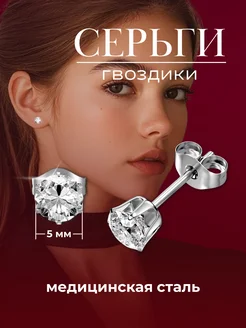 Серьги гвоздики пусеты для прокола ушей 1 пара