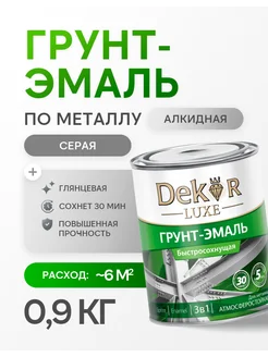 Грунт-эмаль "DEKOR" 3 в 1 быстросохнущая серая 0,9