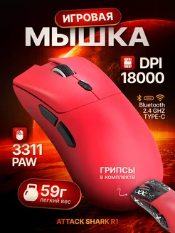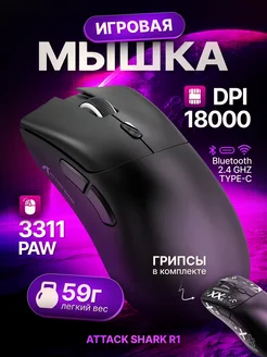 Мышь R1 черная, PAW3311, беспроводная игровая