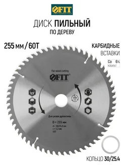 FIT Диск пильный по дереву 255 x 30 25,4 мм 60T