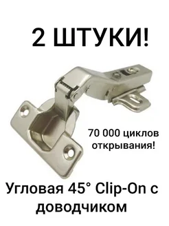 Петля (2 штуки) угловая 45 градусов Clip-on с доводчиком