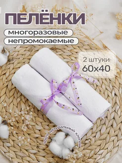 Пеленка непромокаемая многоразовая 2 шт, хлопок 100%, 40х60