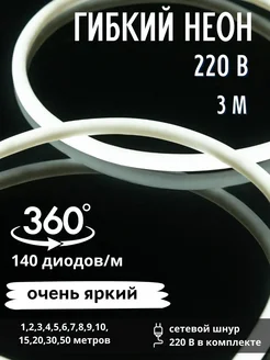 Гибкий неон круглый D - 14мм, 3м, 220В, 140 LED м