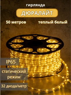 Светодиодная лента (гирлянда) дюралайт 50 м. Теплый белый