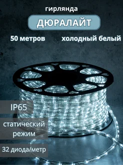 Светодиодная лента (гирлянда) дюралайт 50 м. Холодный белый