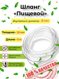 Шланг пищевой "Силикон" d8мм толщ 1 5мм - 5м