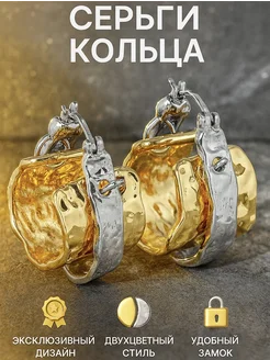 Серьги кольца бижутерия мятый металл под золото и серебро