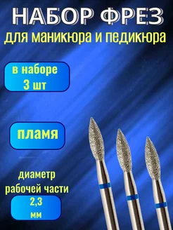 Фреза для маникюра пламя с синей насечкой 3 шт