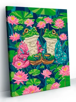 Лягушки в кувшинках Алмазная мозаика на подрамнике 40х50 см