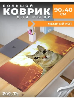 Игровой коврик для мышки большой мемный кот