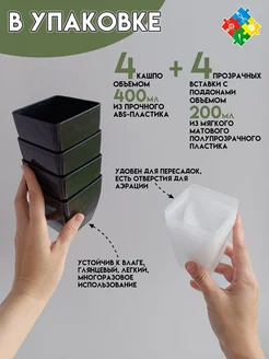 Горшок черный квадратный с прозрачной вставкой 0,4 л