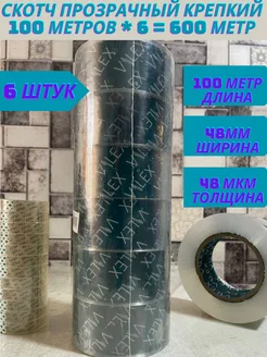 Скотч прозрачный крепкий 100 метров 48 мм * 6 = 600 метр