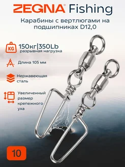 Карабины с вертлюгами на подшипниках 9 0 350Lb 150кг 10шт