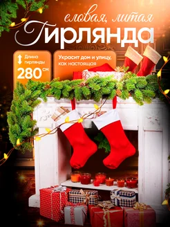 Гирлянда еловая хвойная новогоднее украшение и декор