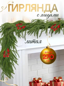 Гирлянда еловая пихта с ягодами новогодний декор и украшение