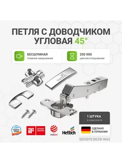 Петля мебельная угловая с доводчиком 95 градусов, 1 шт