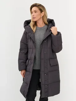 Пальто пуховик зимний длинный с капюшоном оверсайз
