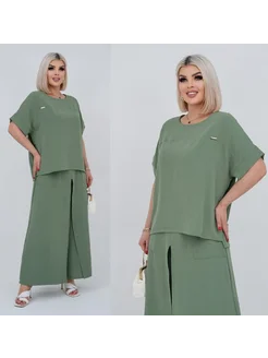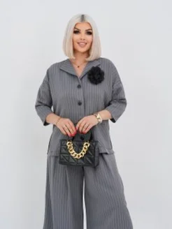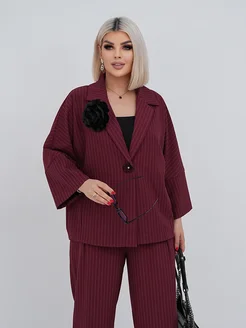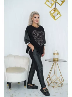 Осенний костюм эко-кожа модный нарядный большие размеры