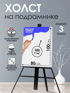 Холст для рисования на подрамнике 80х100 см 3 шт