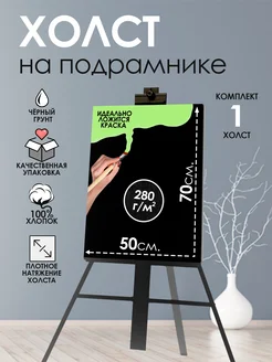 Холст для рисования черный на подрамнике 50х70 см 1 шт