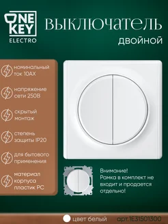 Выключатель двухклавишный белый