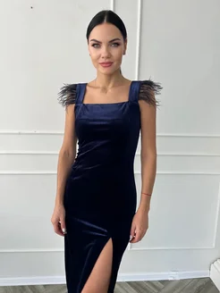 Платье вечернее бархатное с перьями