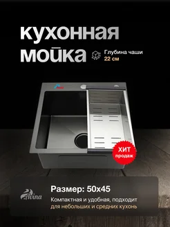 раковина для кухни врезная мойка кухонная 50*45 черная