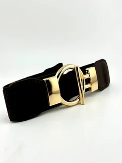 Золотой эластичный-шоколадный пояс-ремень декор на резинке
