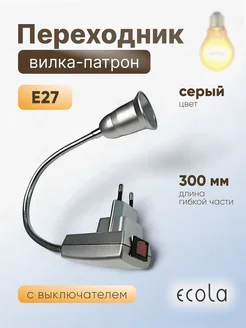 Переходник вилка-патрон E27 гибкий 300мм c выключателем сер