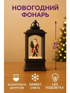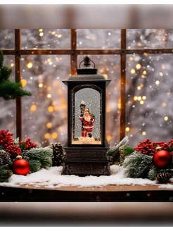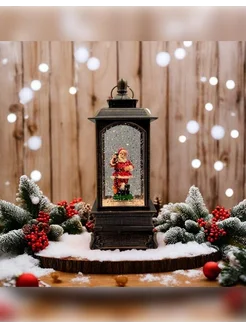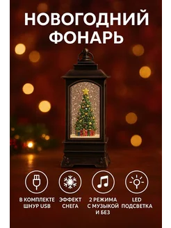 Новогодний фонарь со снегом музыкальный