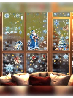 Новогодние наклейки-снежинки на окна 2026