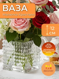 Ваза стеклянная для цветов квадратная прозрачная 12 см