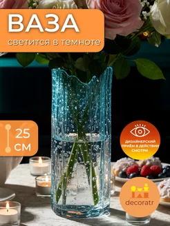 Ваза стеклянная светящаяся в темноте для цветов 25см