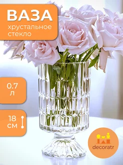 Ваза стеклянная для цветов рифленая прозрачная 24 см
