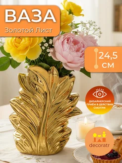 Ваза керамическая для цветов золотая декоративная 24,5 см