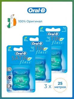 Зубная нить Satin Floss, Мята, 3 шт по 25 м
