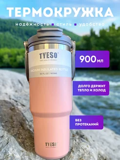 Вакуумная термокружка 1100 мл большая, с трубочкой и ручкой