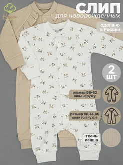 Комбинезон нательный слипы для новорожденных девочек 2 шт