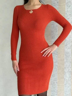 Платье трикотажное лапша офисное теплое