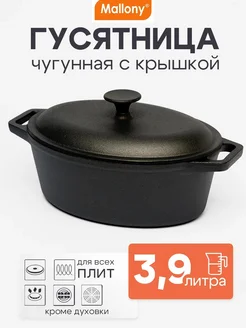 Утятница с крышкой чугунная для индукционной плиты 3,9 литра
