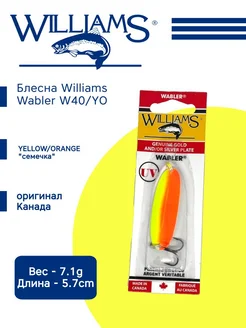 Блесна Williams Wabler W40 YО оригинал Канада