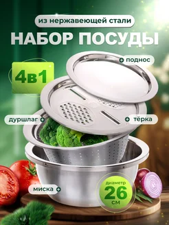 Посуда 4в1 из нержавеющей стали миска терка дуршлаг поднос