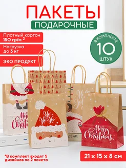 Подарочные крафт пакеты с ручками новогодний набор из 10шт