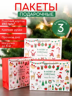 Пакеты подарочные новогодние Весёлый Санта 3шт